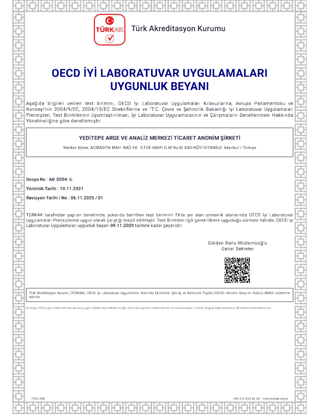 YÜ-AGAM TÜRKAK Accreditation Certificate